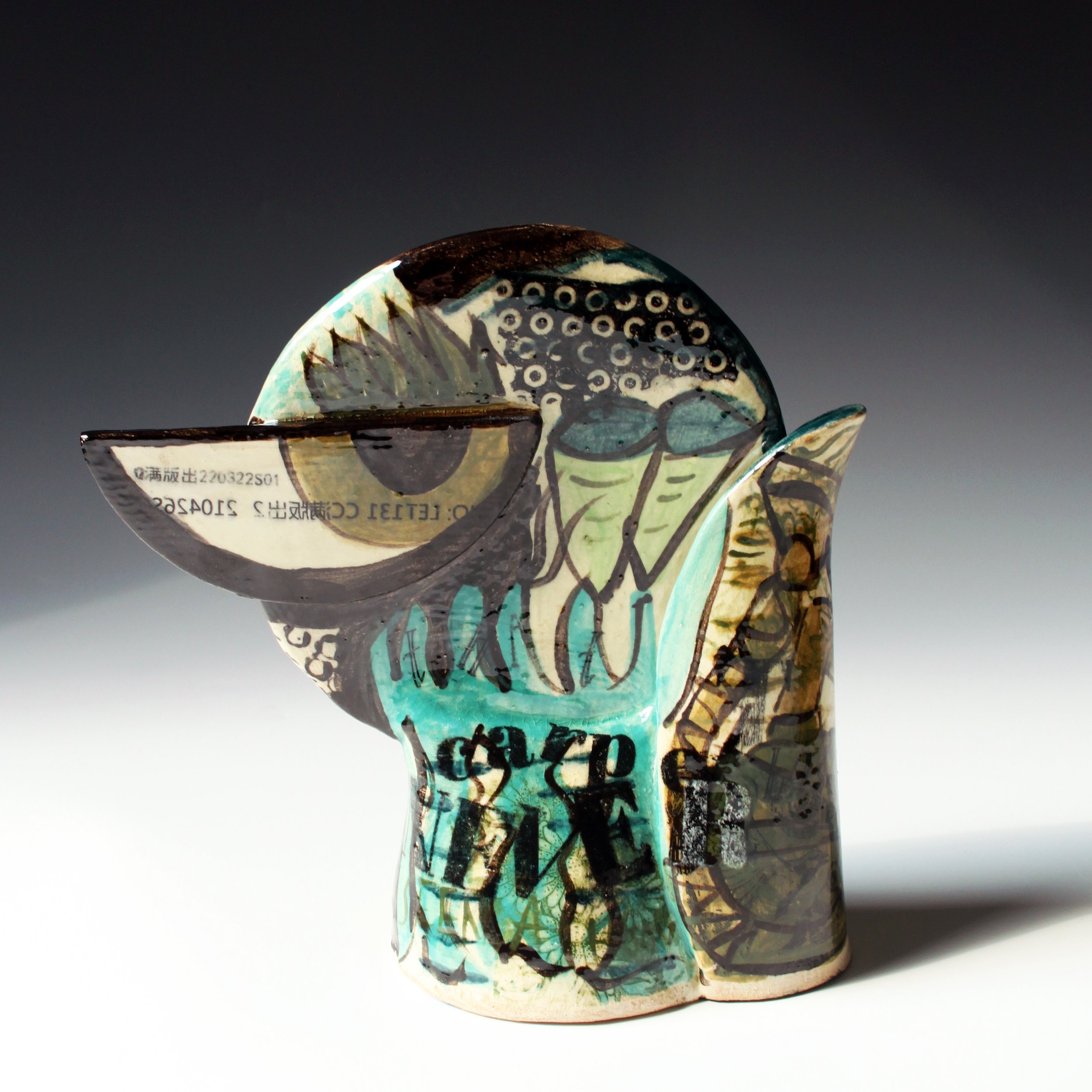 I’ve always been interested in clays ability to house our stories. It is within this tradition of narrative ceramics that my practice is positioned. Focusing on the interrelation between surface and form, this body of work is inspired by table manners and the numerous systems and traditions in place regulating dining. Anchored in tableware forms but resisting functionality, a visual language has been utilised that is purposefully playful. The surface treatment utilises images, symbols and text. Achieved with layers of hand painted underglaze, transfers, glaze and on occasion lustres.